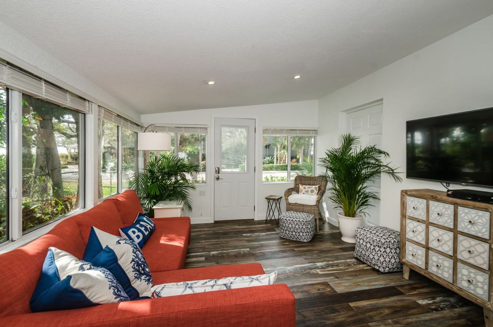 Spacious 1 bedroom cottage just 1 block off Tampa Bay. Views of the Bay from the large windows in the TV room. Private parking in the back. Queen bed, full kitchen, TV room, sofa, table and shower in the bathroom. Shared washer/dryer onsite with the unit next door. Quiet community. 5 minute walk along the bay to get to Main Street. Perfect location.