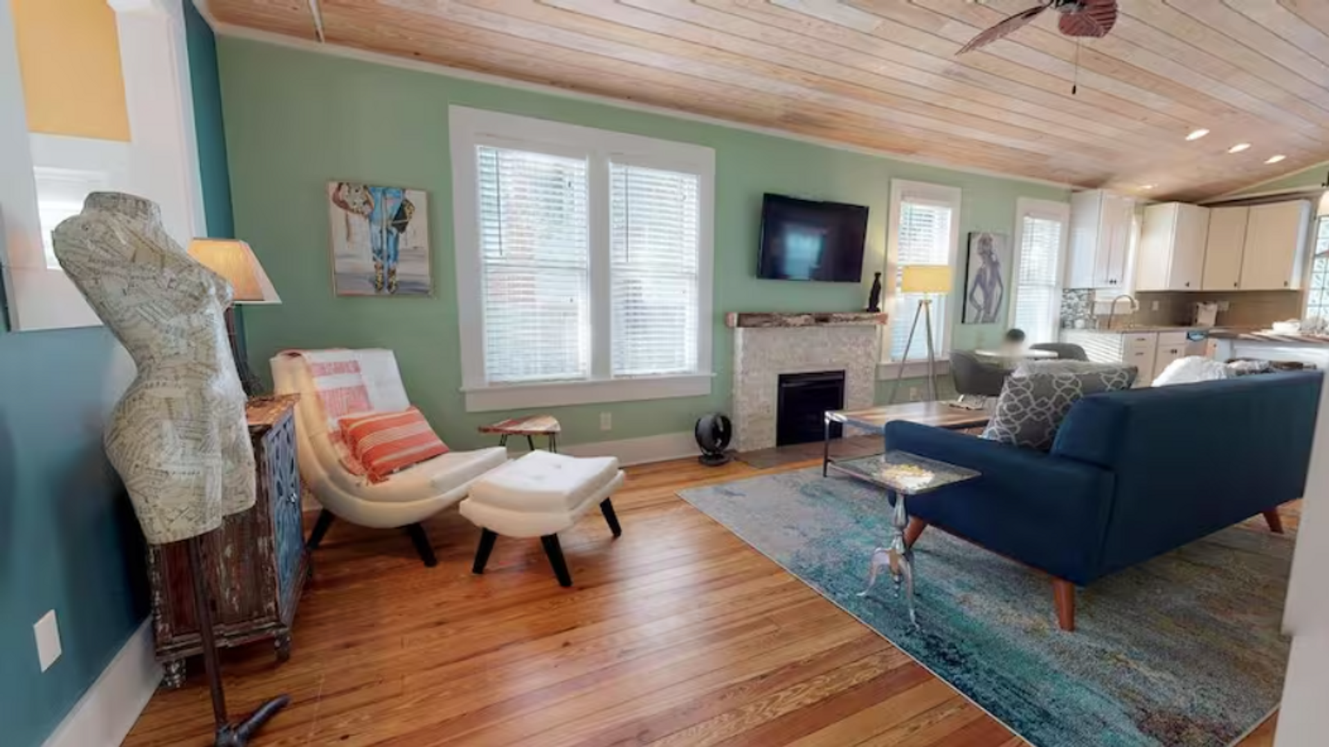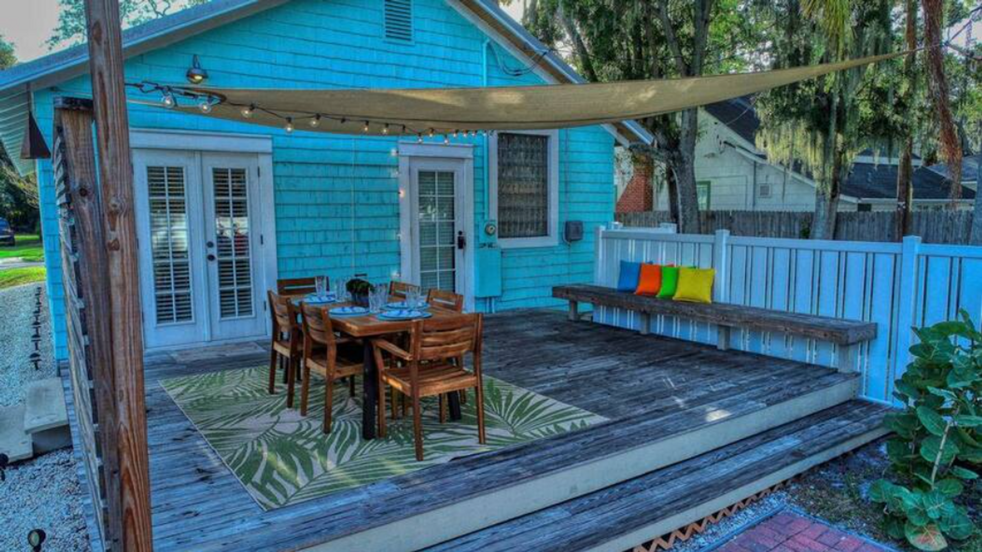 Beautiful 2 bedroom/2 bathroom home in the heart of Dunedin. Few block walk to water front and close to Main St and Honeymoon Island. Close to Pinellas Trail. Queen bed master bedroom. Full kitchen modern. Hardwood Floors. Fenced in yard with private space with deck sitting area. Quiet sitting room in the home. Fire place. Home is regularly mold inspected and we use only all natural cleaning products.