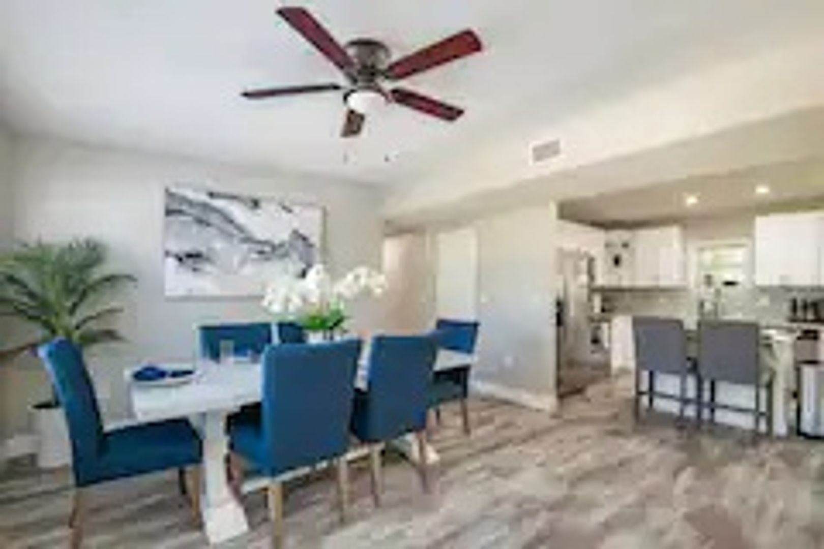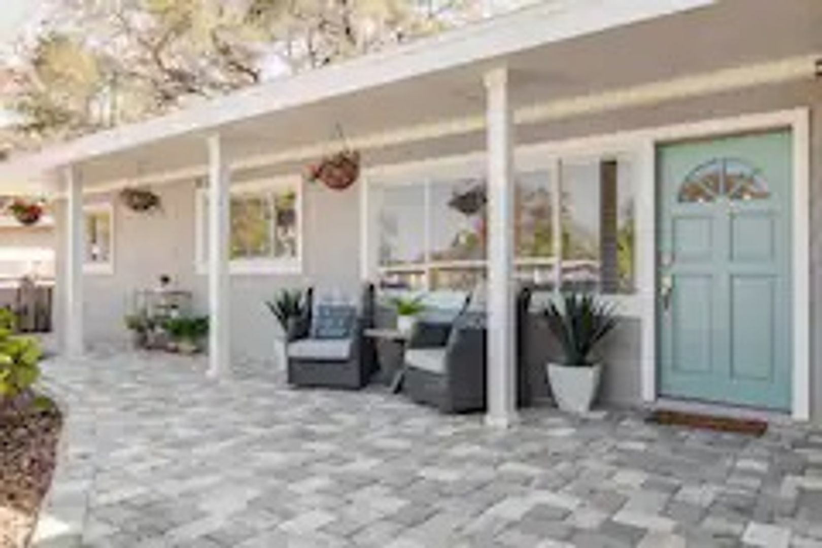 Enjoy a stylish experience at this centrally-located place. This professionally designed decorator home is centrally located within Clearwater and close to Clearwater Beach, Safety Harbor and Dunedin! Ideal for longer stays, relocations and medical patients. This residence has it all. Two Master bedrooms with en suite bathrooms and large open dining room, kitchen and living room concept. All newly decorated by interior designer in early 2022. large patio with brick pavers and cover awning. 65 inch TV.
