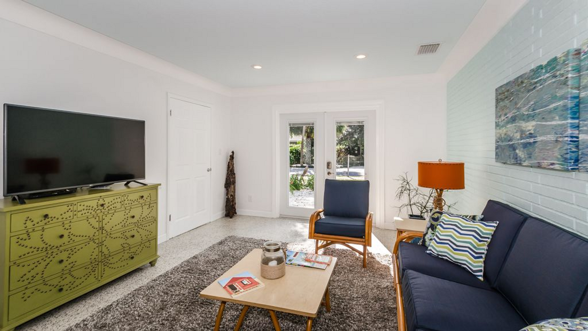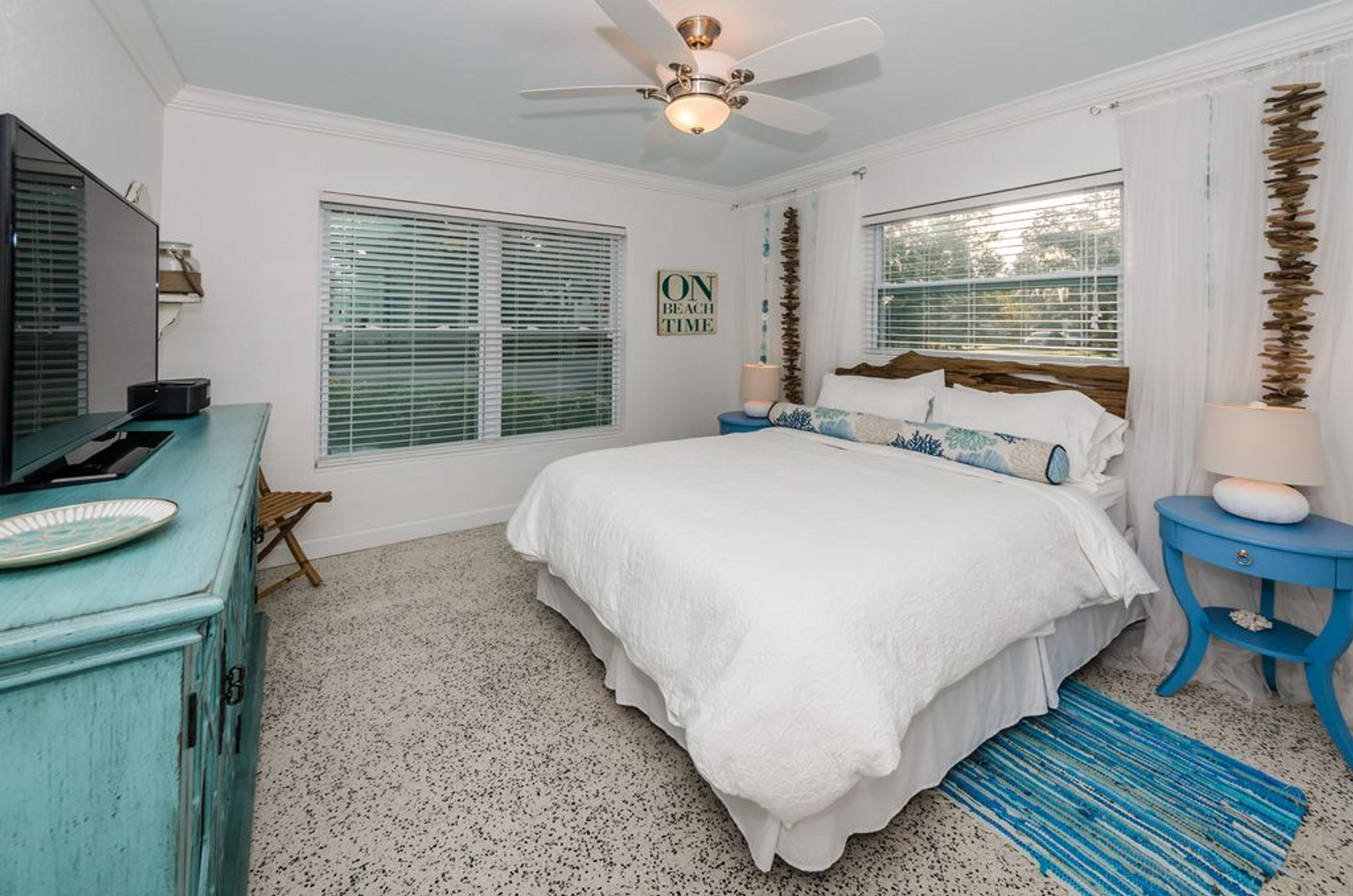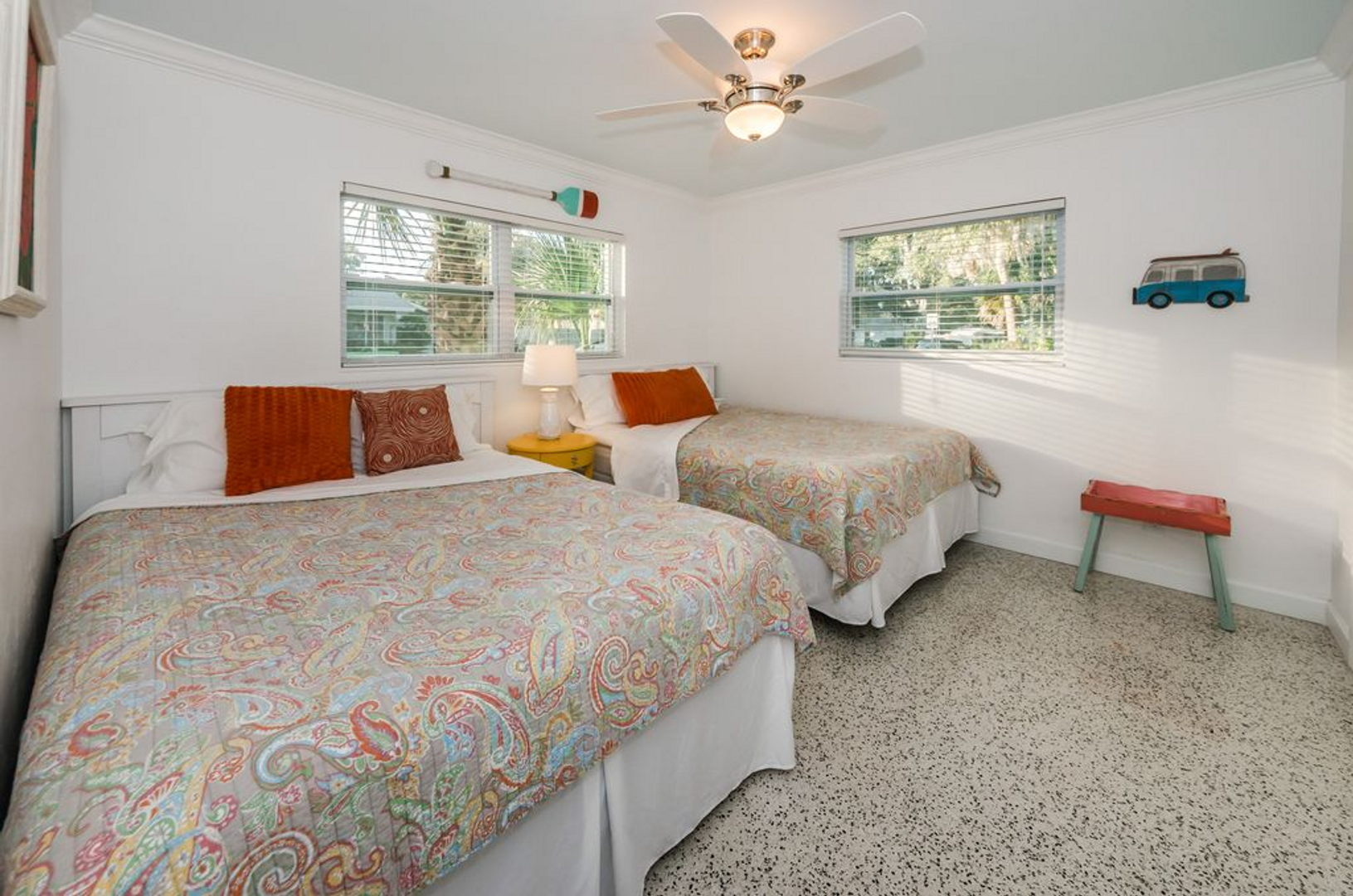 Immaculate 2 bedroom/1 bathroom cottage located in the heart of Safety Harbor, FL and 1 block off Tampa Bay. Great views from the yard. Terrazzo flooring. Master bedroom has queen bed and guest room has a queen and a twin bed. Bathroom has shower/tub. Full kitchen with dishwasher. TV room with sofa. Shared laundry facility onsite with unit next door. 5 min walk to Main St. 10 min drive to Oldsmar. 20 min drive to downtown Clearwater. 25 min from Clearwater Beach.